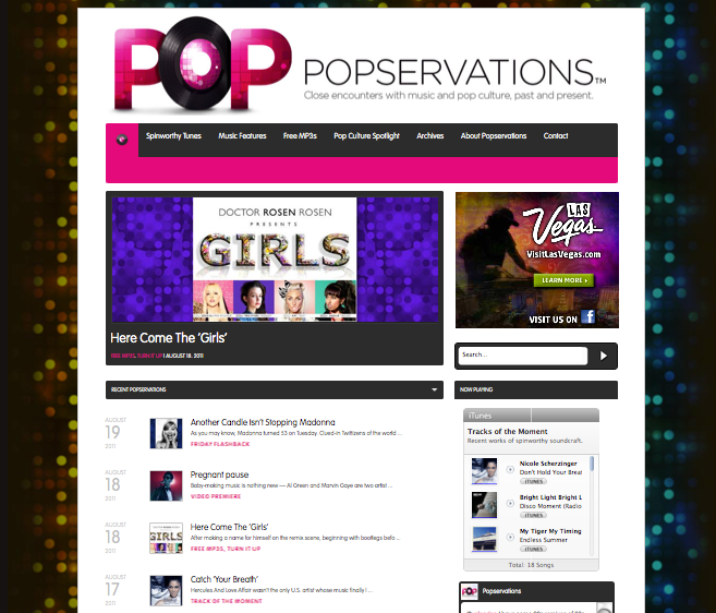 As the creator and editor of Popservations.com (writing as Johnathan Pop, using my maternal surname), I started serving up spinworthy new music to readers in January 2008. Other features focus on the rearview mirror, spotlighting past favorites and forgotten tunes ripe for rediscovery.